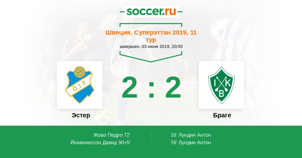 90+5' (2:2) Йоханнессон Давид (10)