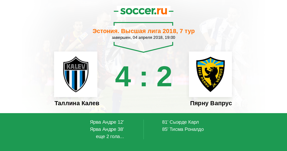 Матчи Эстония. Высшая лига 2018