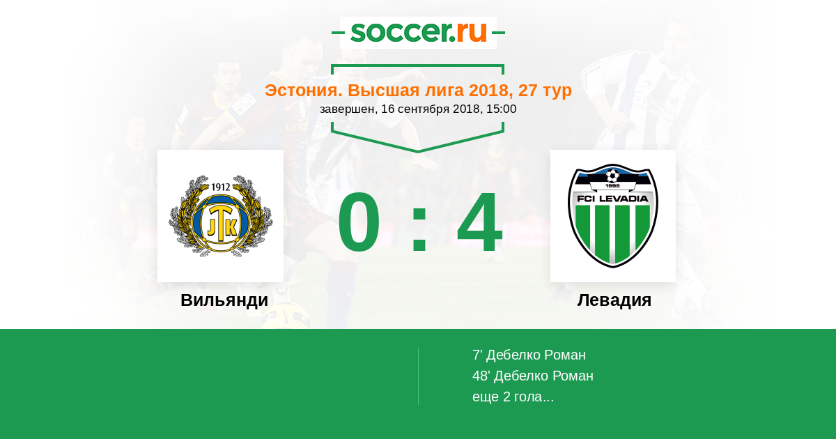 Матчи Эстония. Высшая лига 2018