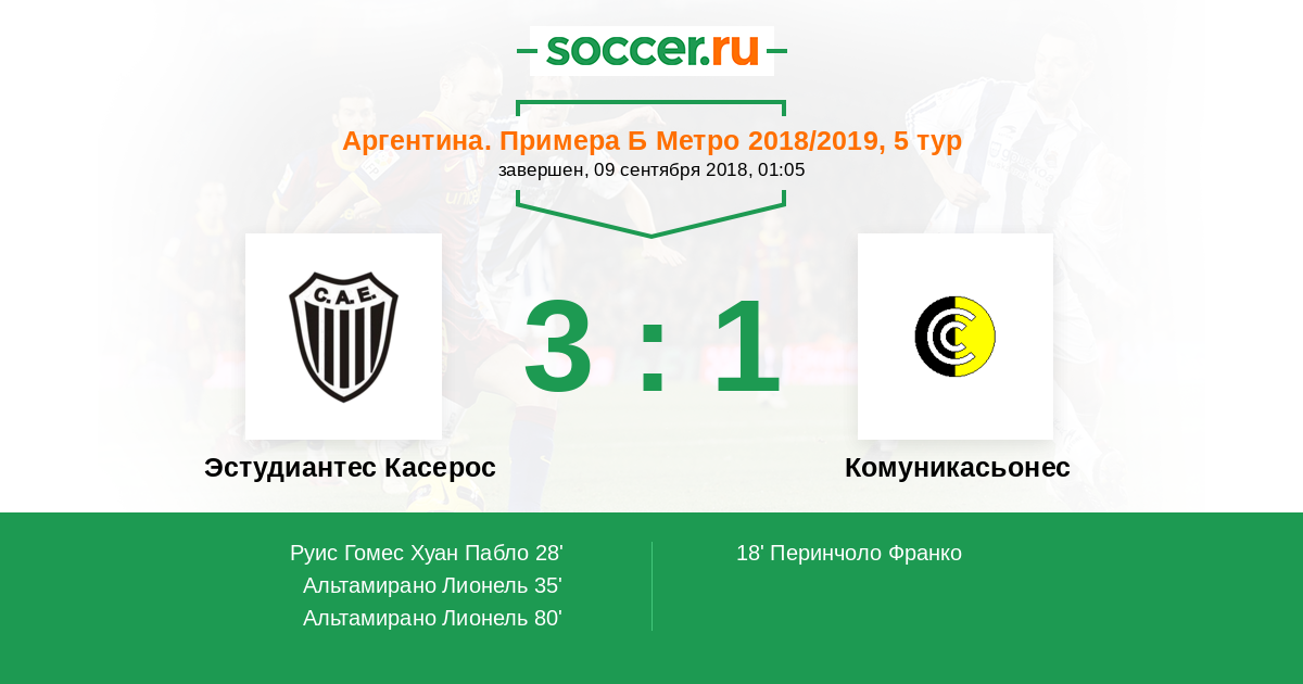 Матчи Аргентина. Примера Б Метро 2018/2019