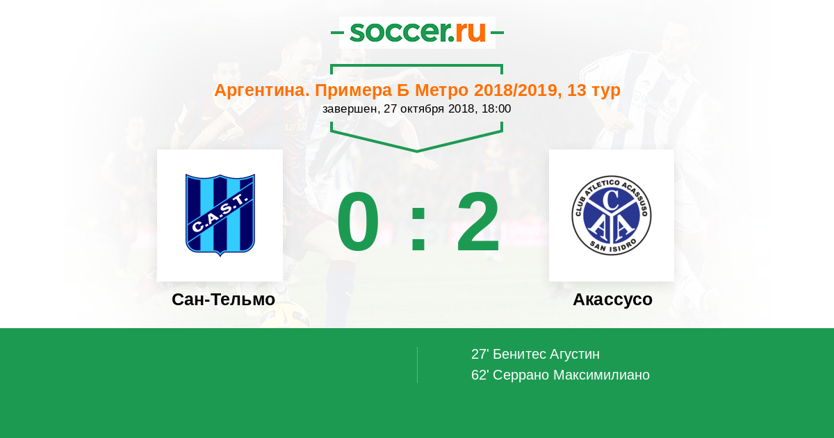 27' (0:1) Бенитес Агустин