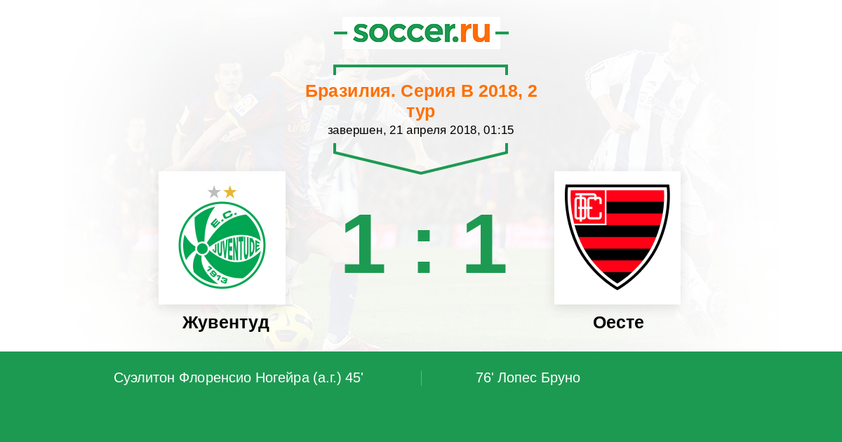 45' (1:0) Автогол Суэлитон Флоренсио Ногейра (13)