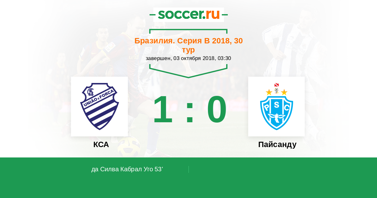 53' (1:0) да Силва Кабрал Уго (11) (Жуан (8))