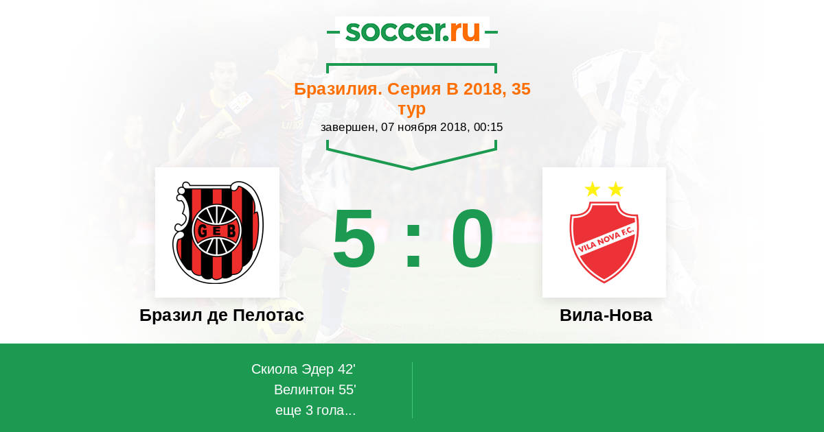 55' (2:0) Велинтон (22) (Уолас Пернамбукано (9))