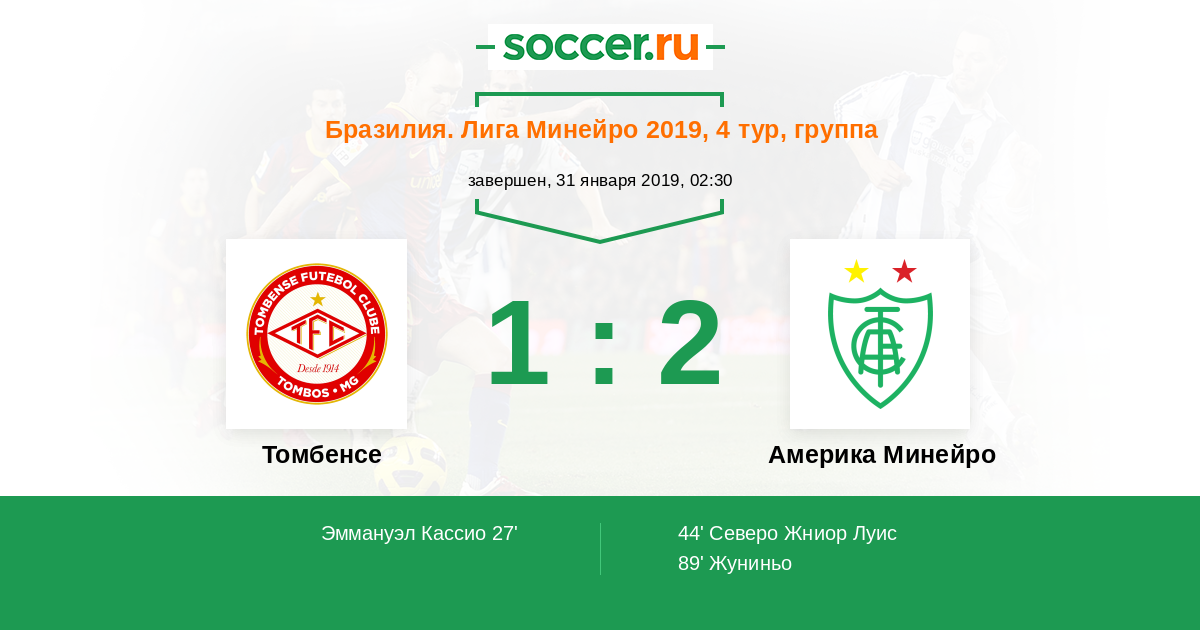 Матчи Бразилия. Лига Минейро 2019