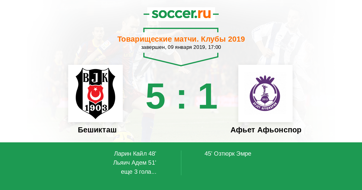 52' (3:1) Ларин Кайл (95) (Ялчин Гювен (19))