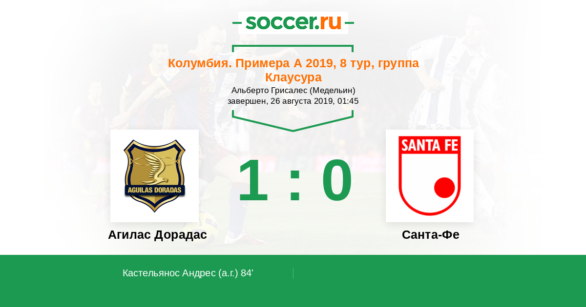 84' (1:0) Автогол Кастельянос Андрес (22)