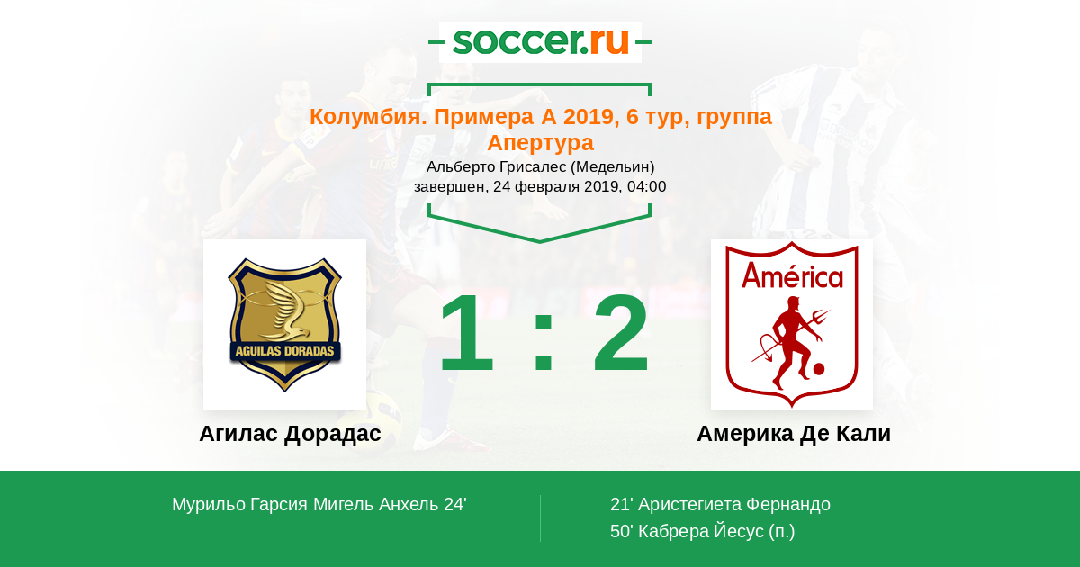 21' (0:1) Аристегиета Фернандо (9) (Альварес Андрес (32))