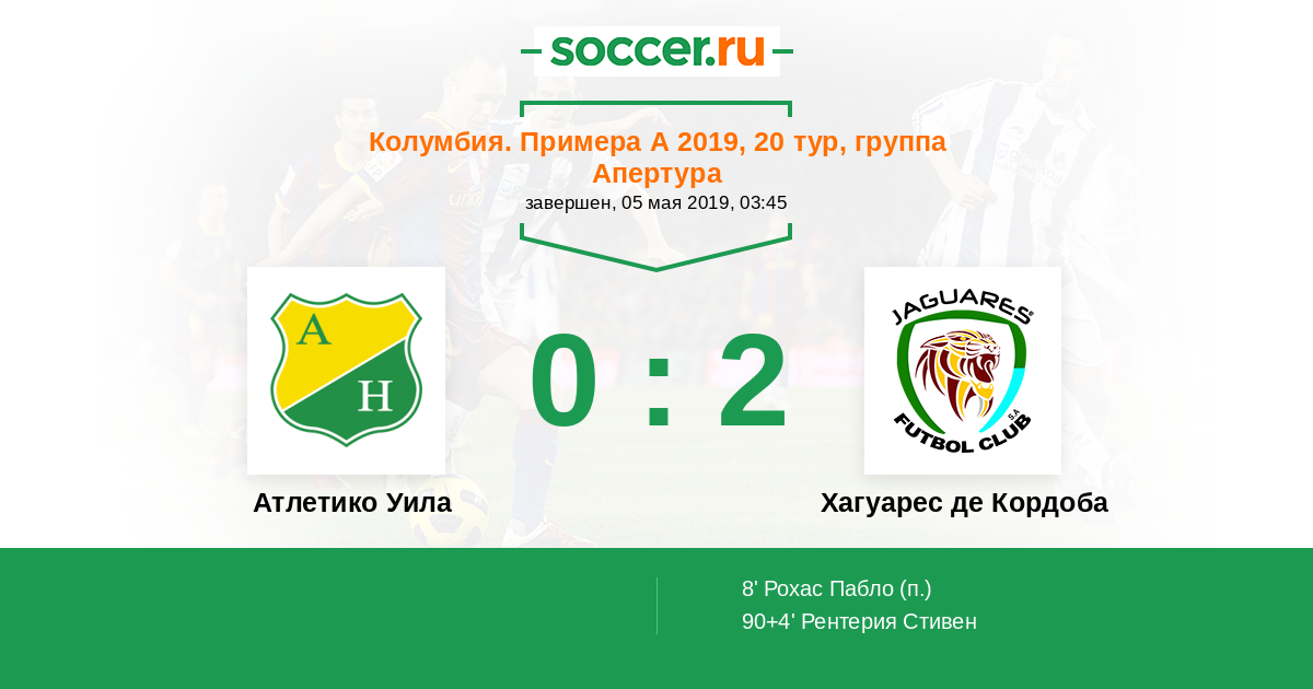 90+4’ 0:2 Рентерия Стивен
