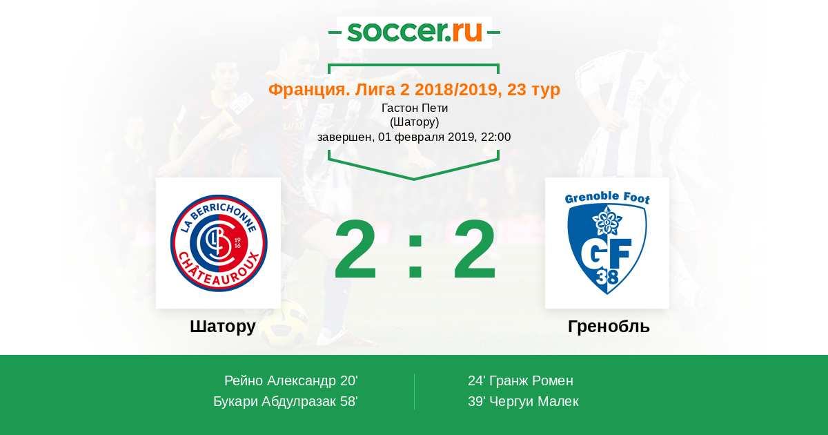 39' (1:2) Чергуи Малек (27) (Момбрис Жером (23))