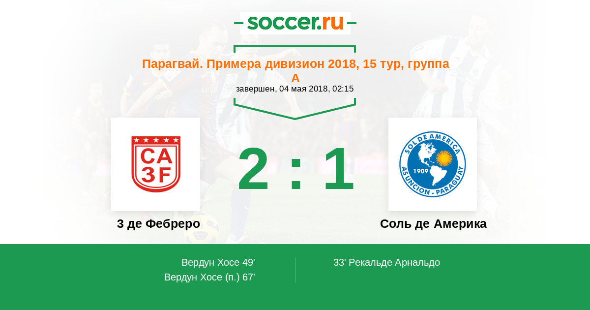 67' (2:1) Вердун Хосе