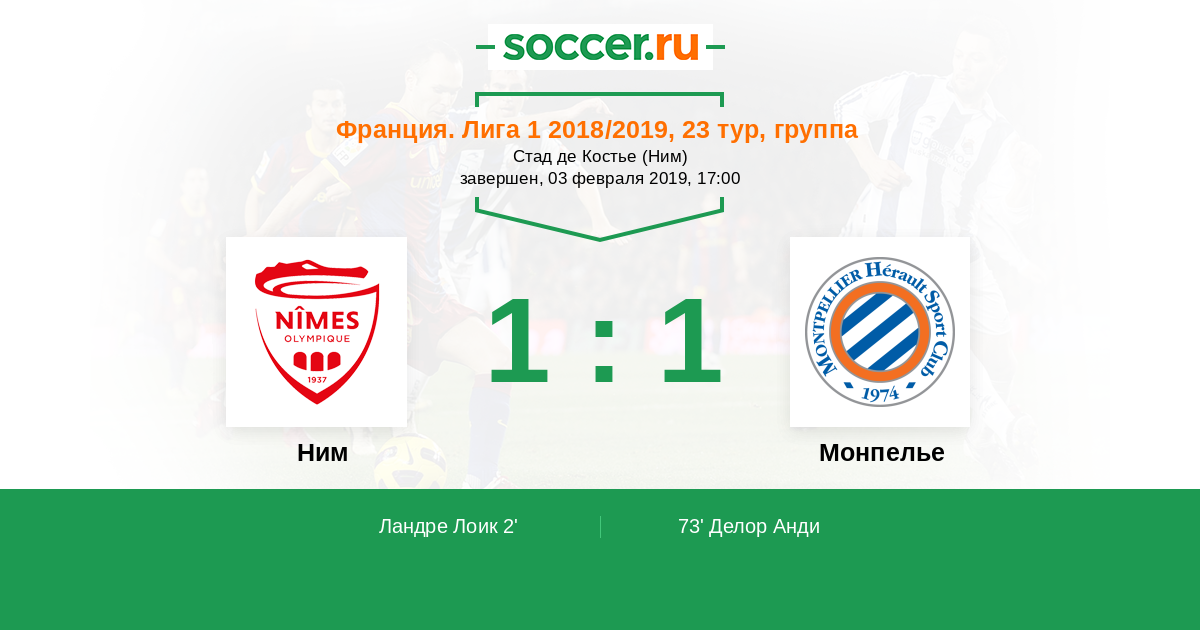 73' (1:1) Делор Анди (11) (Ляборд Гаэтан (10))