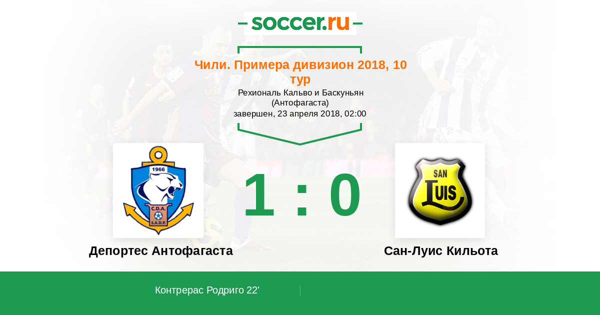 22' (1:0) Контрерас Родриго (27) (Бельо Эдуард (20))
