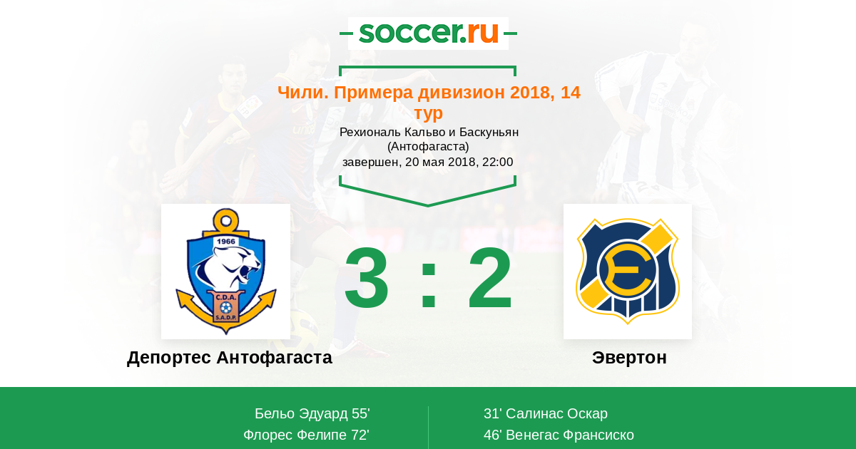 55' (1:2) Бельо Эдуард (20) (Флорес Фелипе (17))