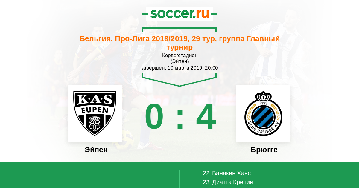 23' (0:2) Диатта Крепин (11) (Ванакен Ханс (20))