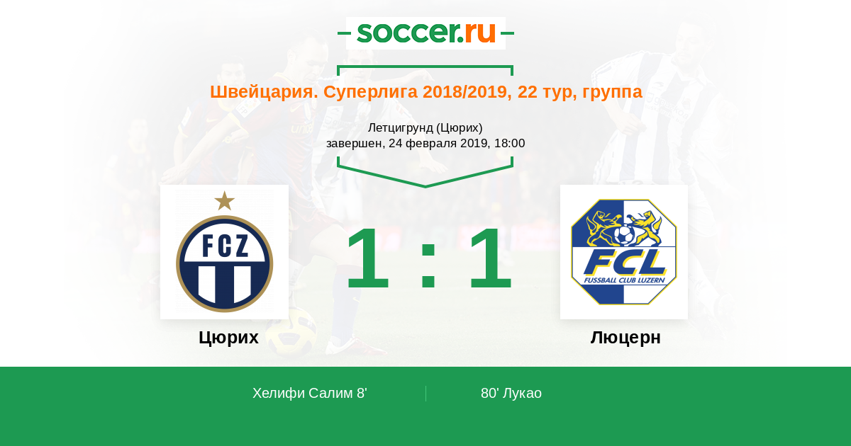 80' (1:1) Лукао (5) (Шнойвли Кристиан (19))