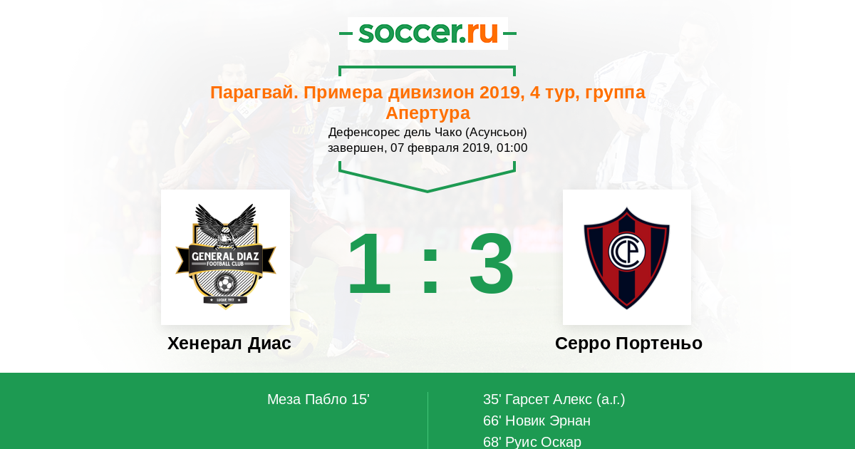68' (1:3) Руис Оскар (11) (Хуан Хосе Агилар (22))