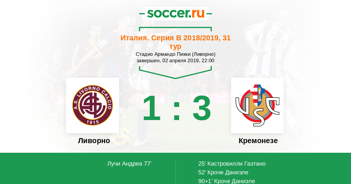 Гол90+1' (1:3) Кроче Даниэле (11) (Рензетти Франческо (33))