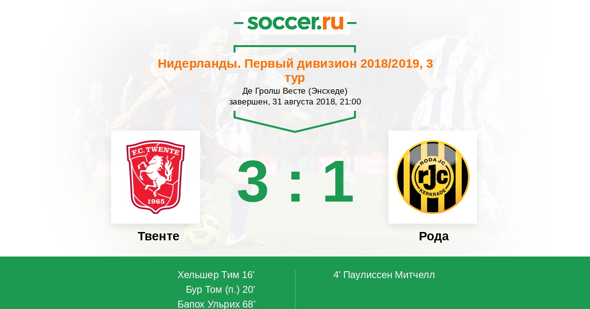 4' (0:1) Паулиссен Митчелл (19) (Энгельс Марио (14))