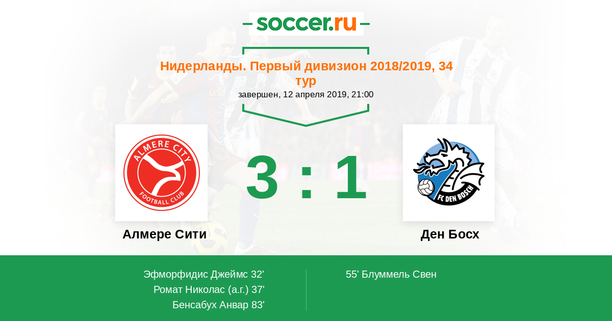 32' (1:0) Эфморфидис Джеймс (30) (ван Влеркен Брам (2))