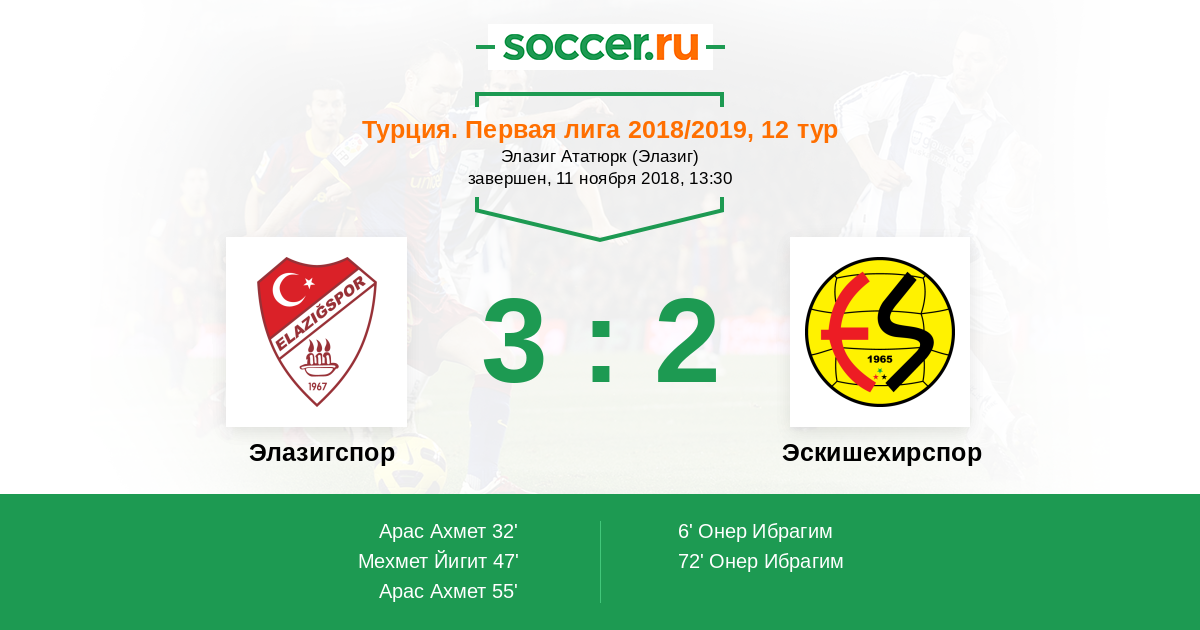 6' (0:1) Онер Ибрагим (56) (Озкан Мехмет (41))