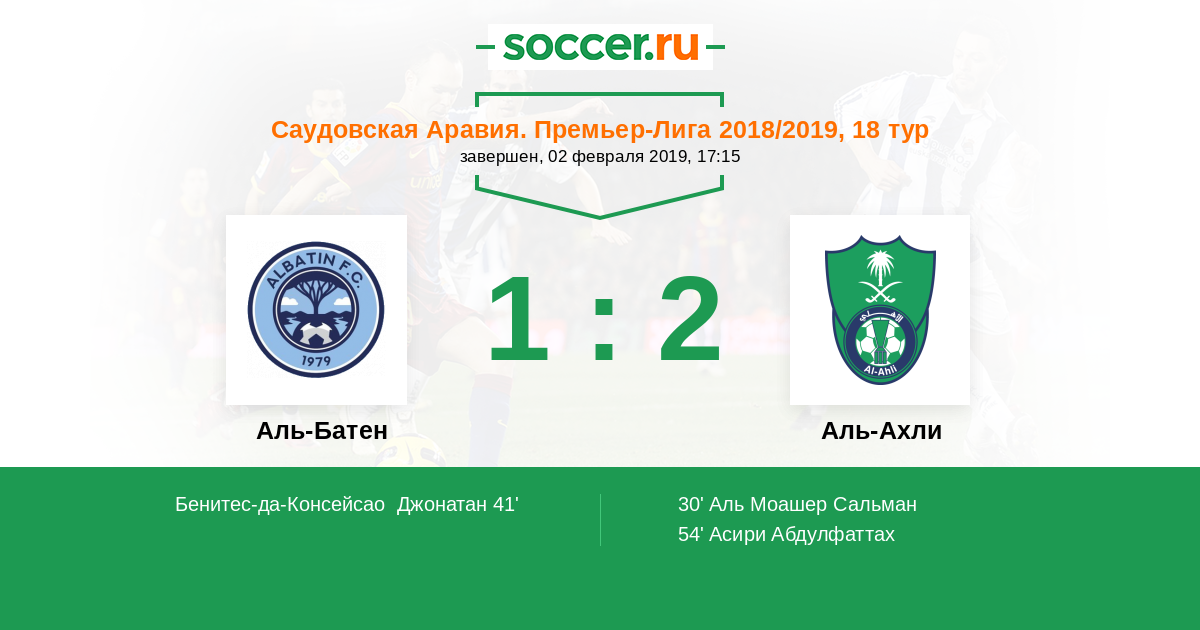 41' (1:1) Бенитес-да-Консейсао Джонатан (27) (Аль-Мутаири Бандар (3))