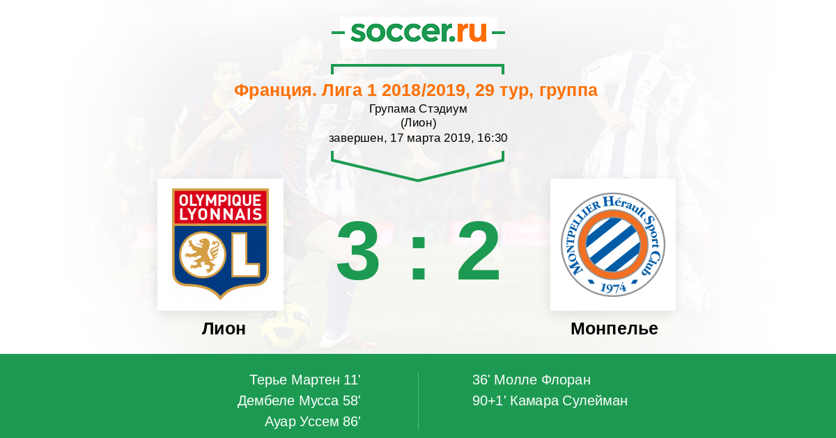 58' (2:1) Дембеле Мусса (9) (Ндомбеле Танги (28))