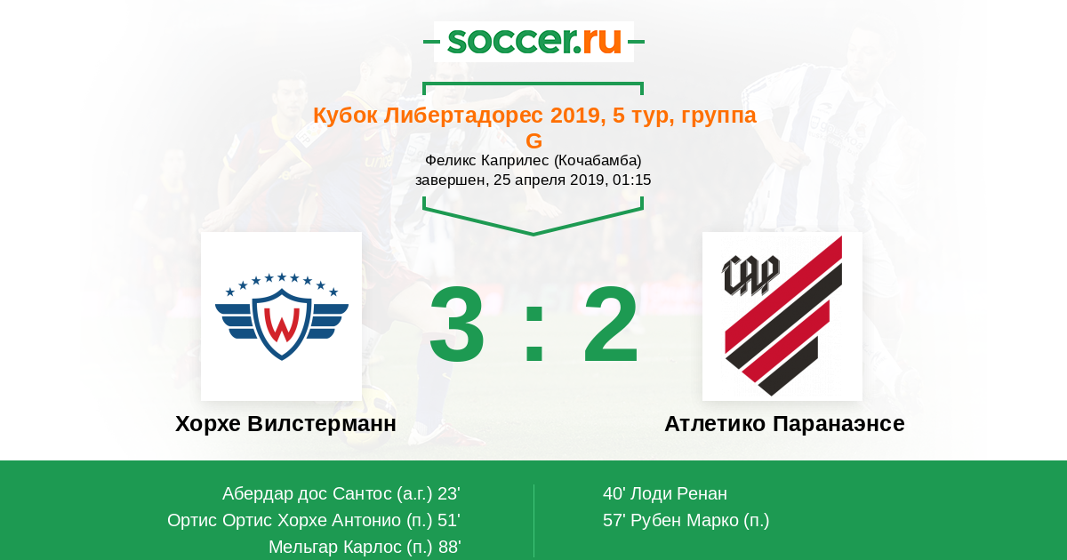 23' (1:0) Автогол Абердар дос Сантос (1)
