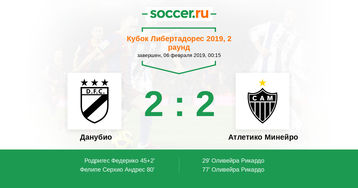 77' (1:2) Оливейра Рикардо (9) (Майкон (11))