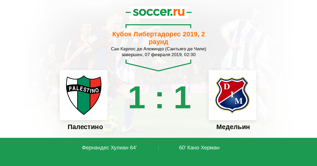 64' (1:1) Фернандес Хулиан (5) (Сото Гильермо (20))