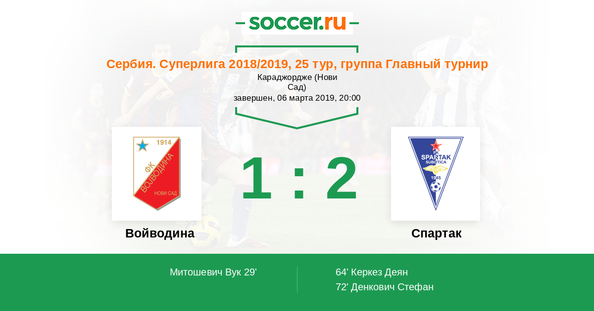 72' (1:2) Денкович Стефан (Обрадович Неманья)