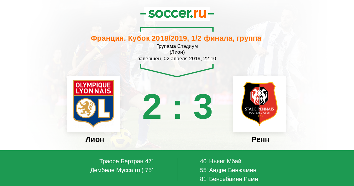 81' (2:3) Бенсебаини Рами (15) (Буриго Бенжамен (14))