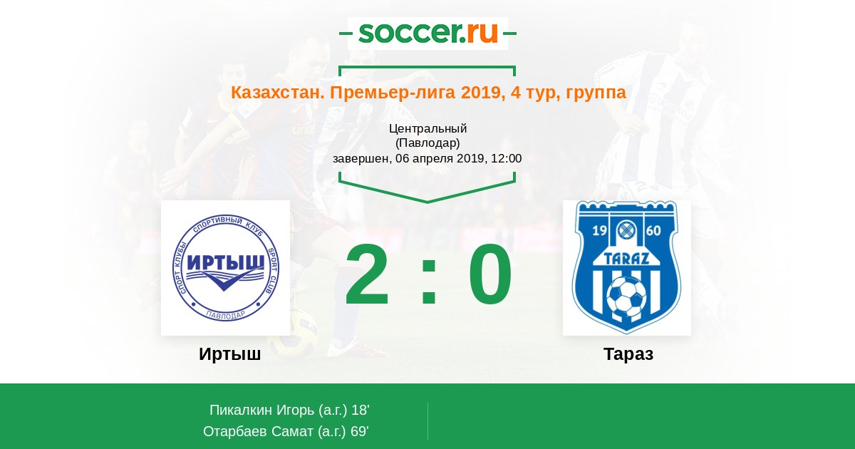 69' (2:0) Автогол Отарбаев Самат
