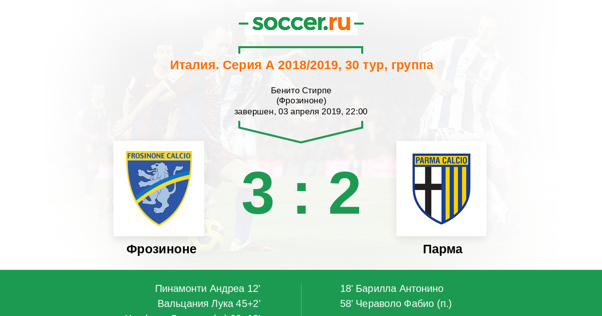 12' (1:0) Пинамонти Андреа (89) (Вальцания Лука (16))
