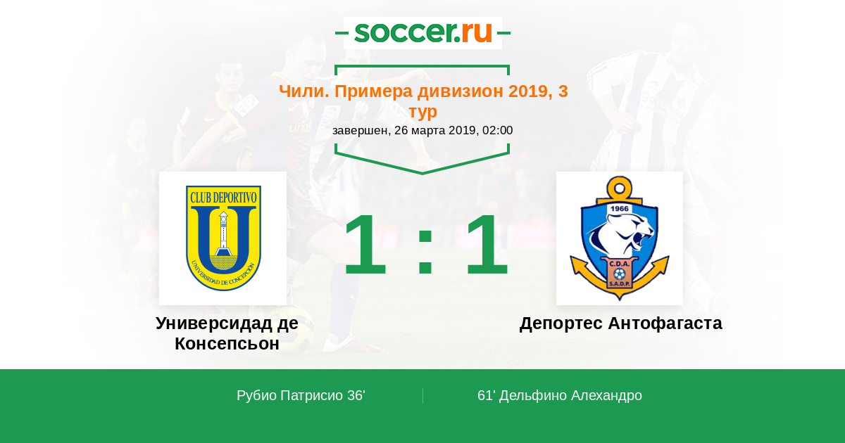 61' (1:1) Дельфино Алехандро (15) (Бельо Эдуард (20))
