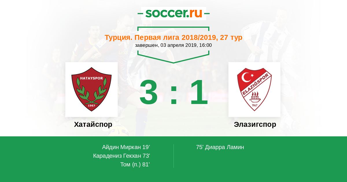 19' (1:0) Айдин Миркан (20) (Сенмез Кубилай (6))