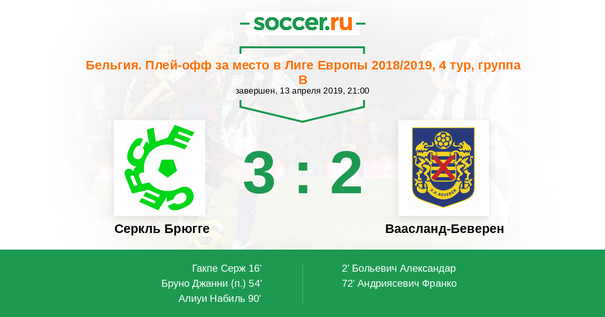 Бельгия. Плей-офф за место в Лиге Европы 2018/2019, 4 тур, группа B