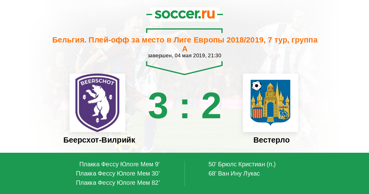 Бельгия. Плей-офф за место в Лиге Европы 2018/2019, 7 тур, группа A
