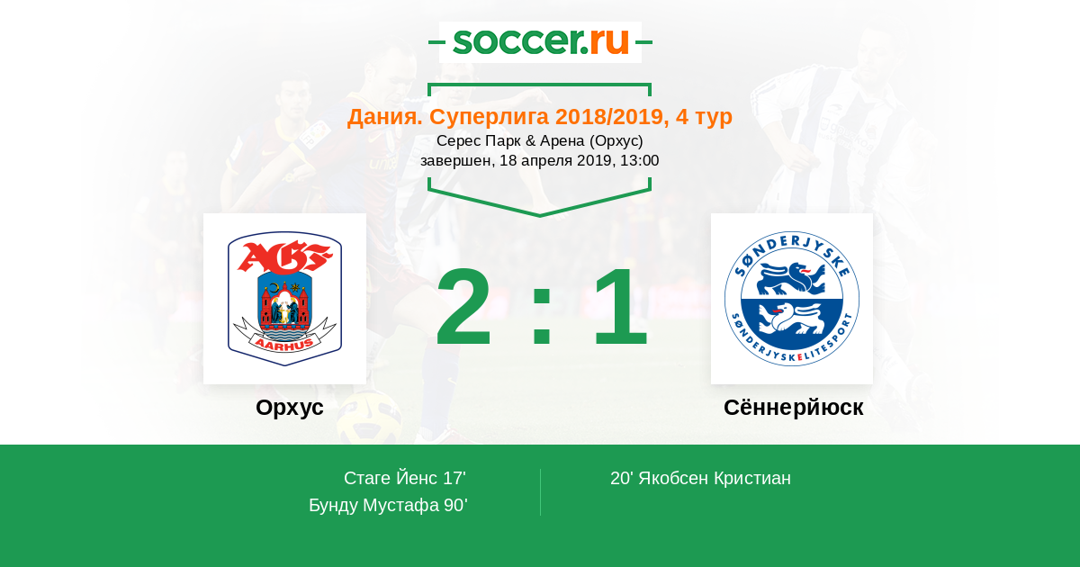 17' (1:0) Стаге Йенс (14) (Хойер Каспер (16))