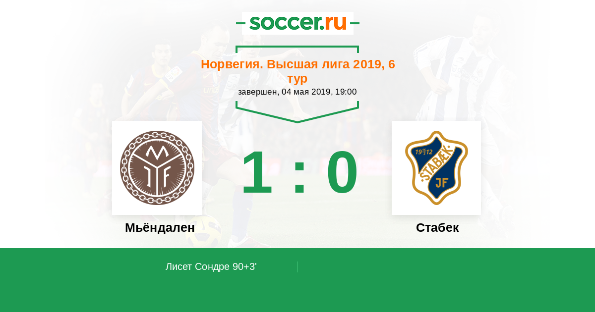 Гол90+3' (1:0) Лисет Сондре (9) (Боянг Джибриль (31))