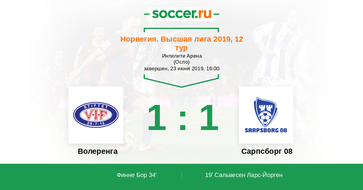 19' (0:1) Сальвесен Ларс-Йорген (88) (Ларсен Йорген Странд (45))