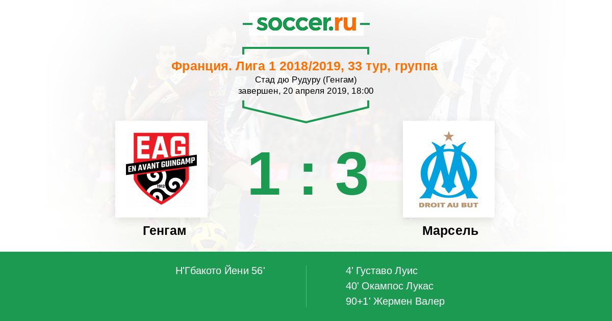 40' (0:2) Окампос Лукас (5) (Товен Флориан (26))