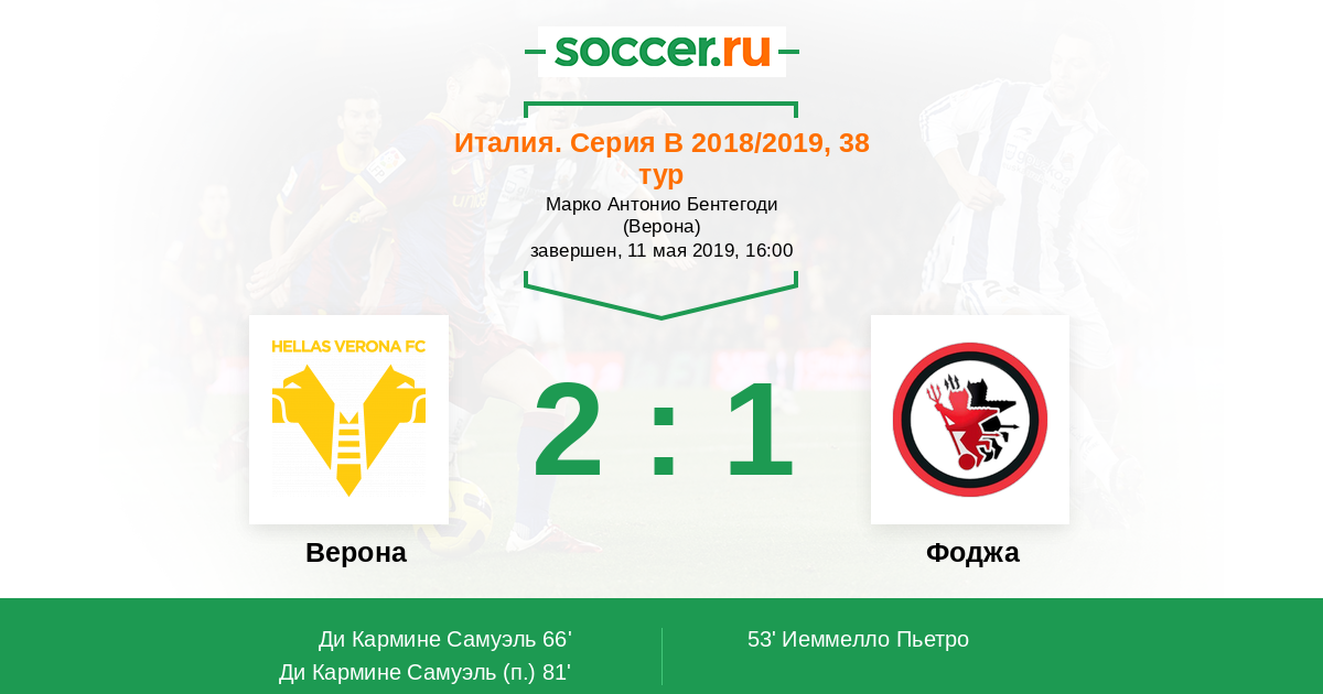 53' (0:1) Иеммелло Пьетро (9) (Греко Леандро (7))