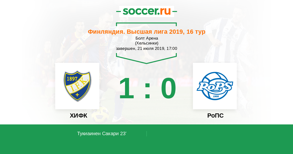 23' (1:0) Тукиаинен Сакари (27)
