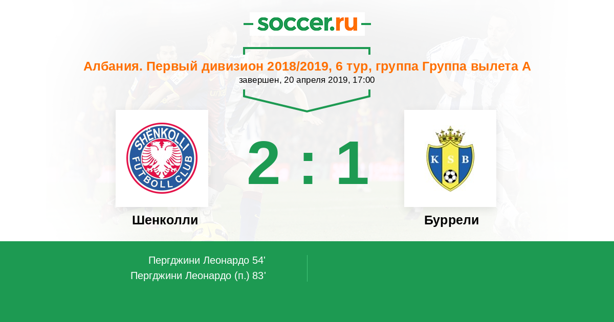 54' (1:0) Пергджини Леонардо