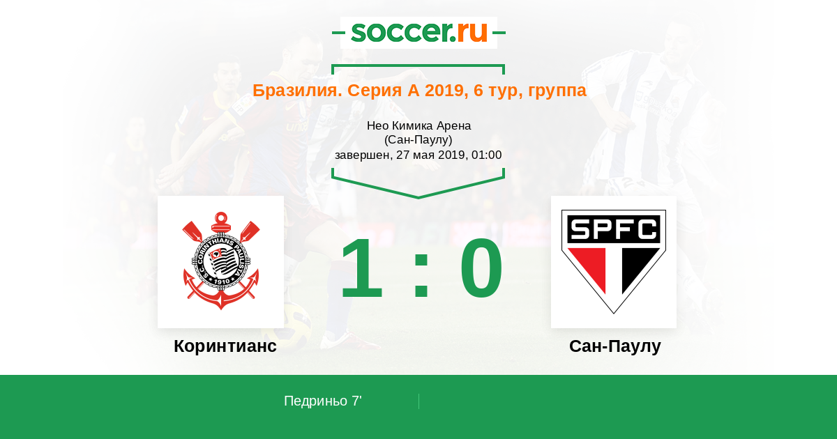 7' (1:0) Педриньо (38) (Фагнер (23))