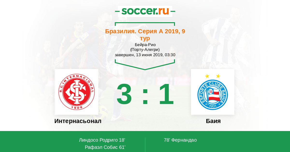 18' (1:0) Линдосо Родриго (19) (Рафаэл Собис (23))