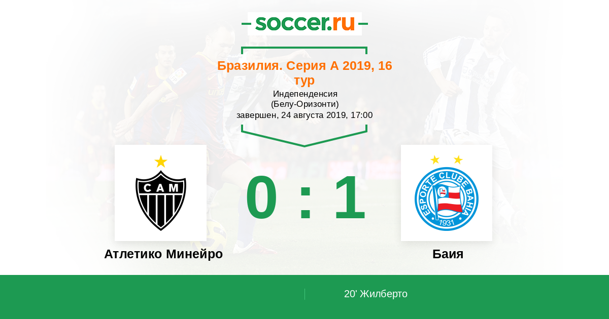 20' (0:1) Жилберто (9) (Нино Параиба (2))