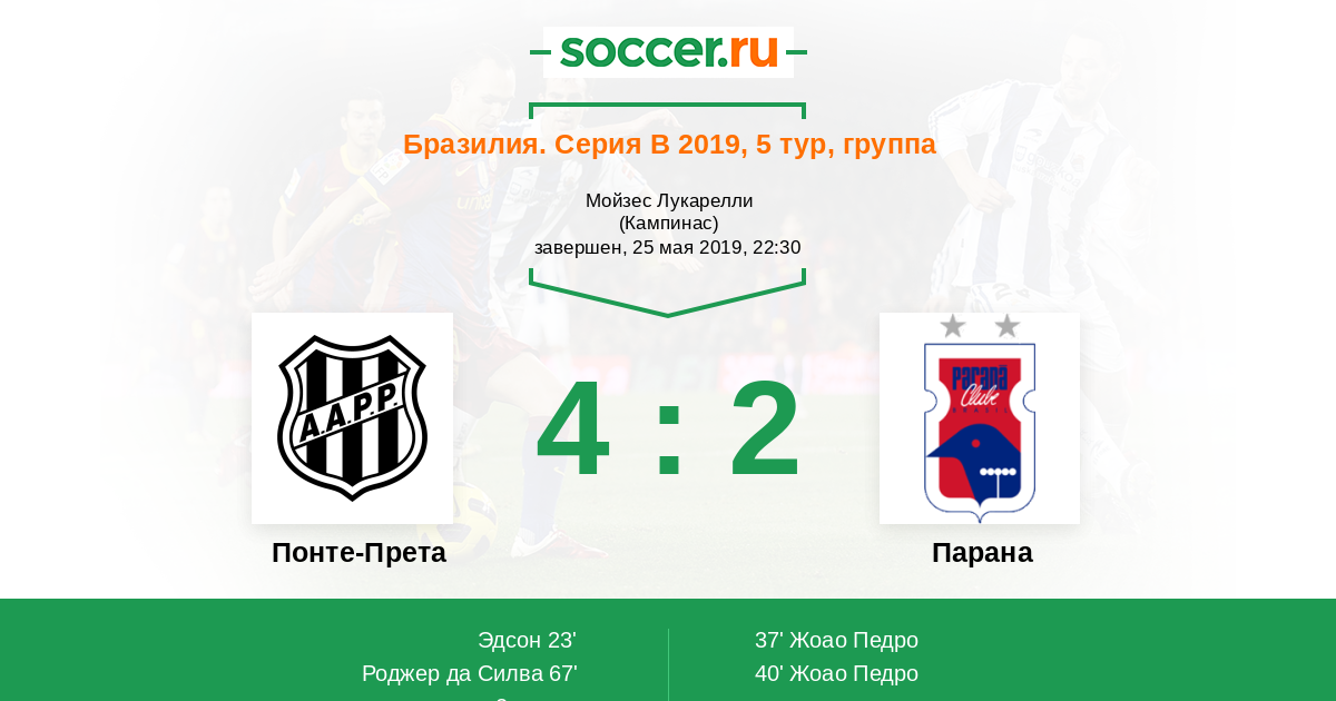 67' (2:2) Роджер да Силва (9) (Варгас Матеус (10))