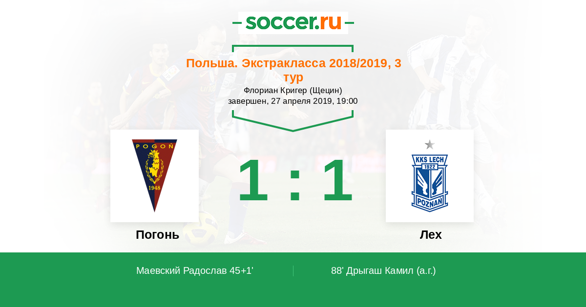 45+1' (1:0) Маевский Радослав (10) (Малец Мариуш (33))